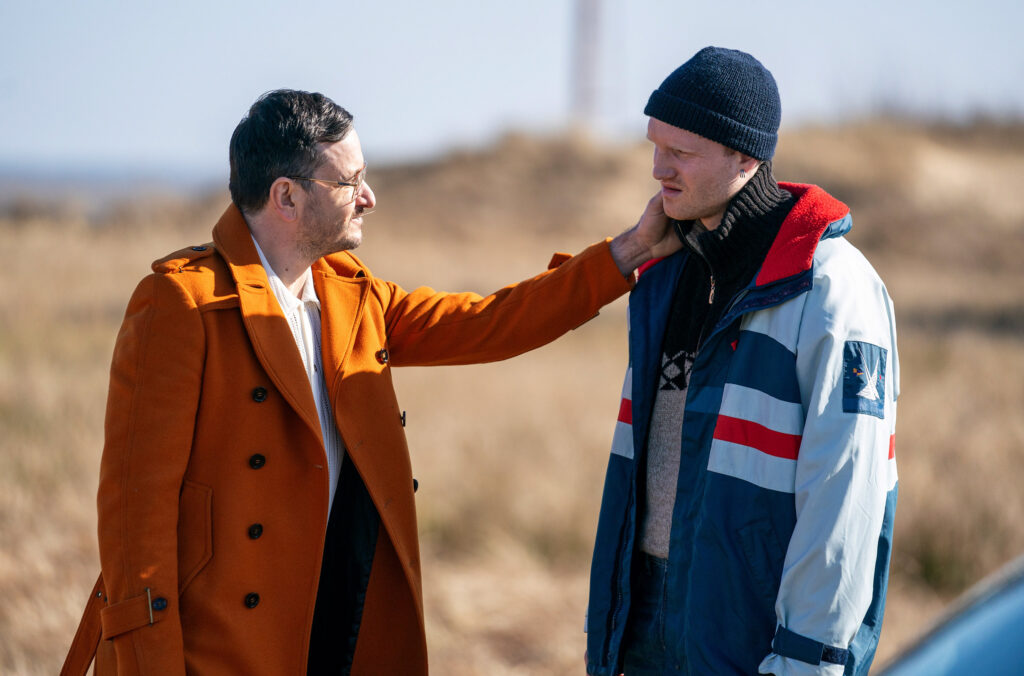 Erik Petersen (Sammy Scheuritzel) und Roman Krasnowski (Vlad Chiriac), Lokalpolitiker Michael Polikeit (Alexander Wipprecht)