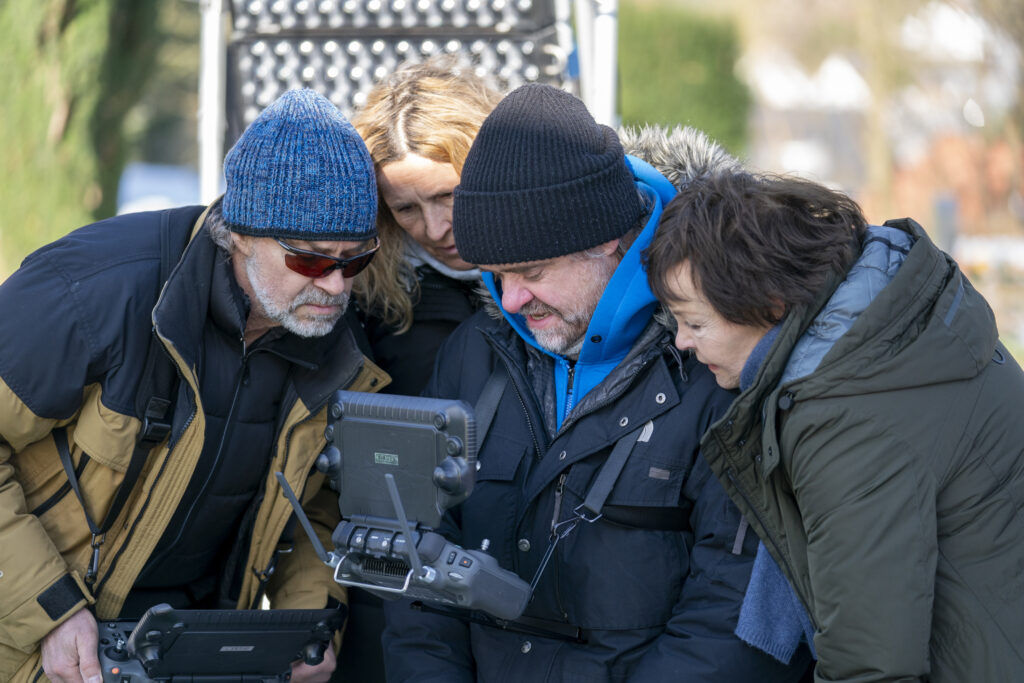 Making-of-Bilder: Regisseurin Steffi Doehlemann, Katrin Sass, Till Firit, Kameramann Oliver-Maximilian Kraus