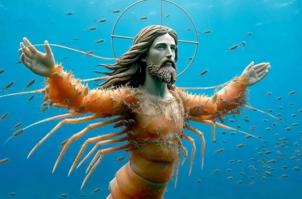 Eine von zahllosen Inkarnationen des KI-Slop-Phänomens „Shrimp Jesus“ © Studio Fritz Gnad